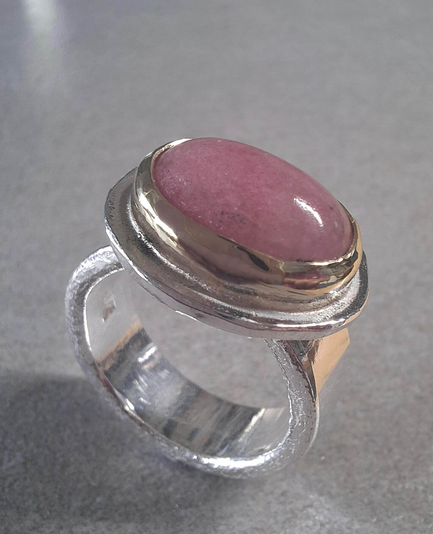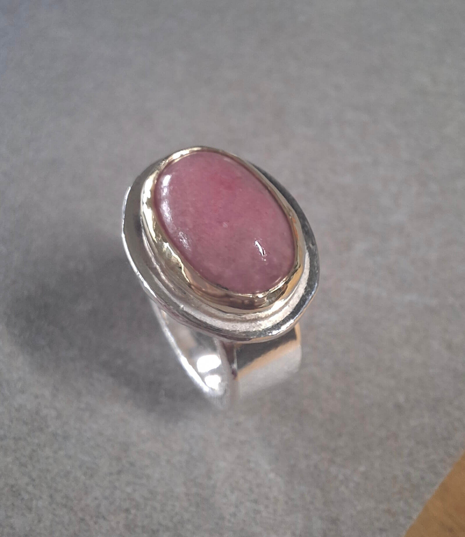 Zilveren ring met in goud gevatte rhodochrosiet