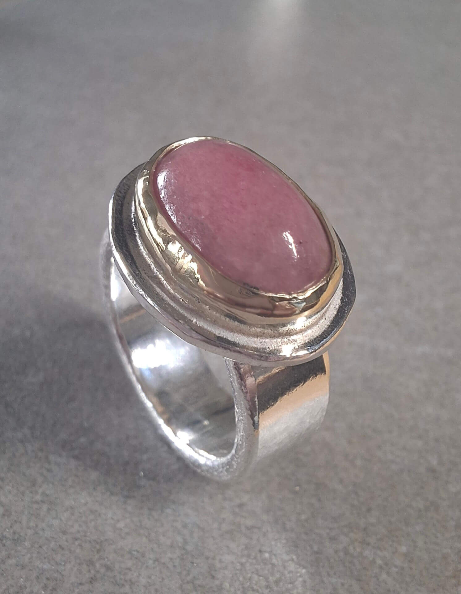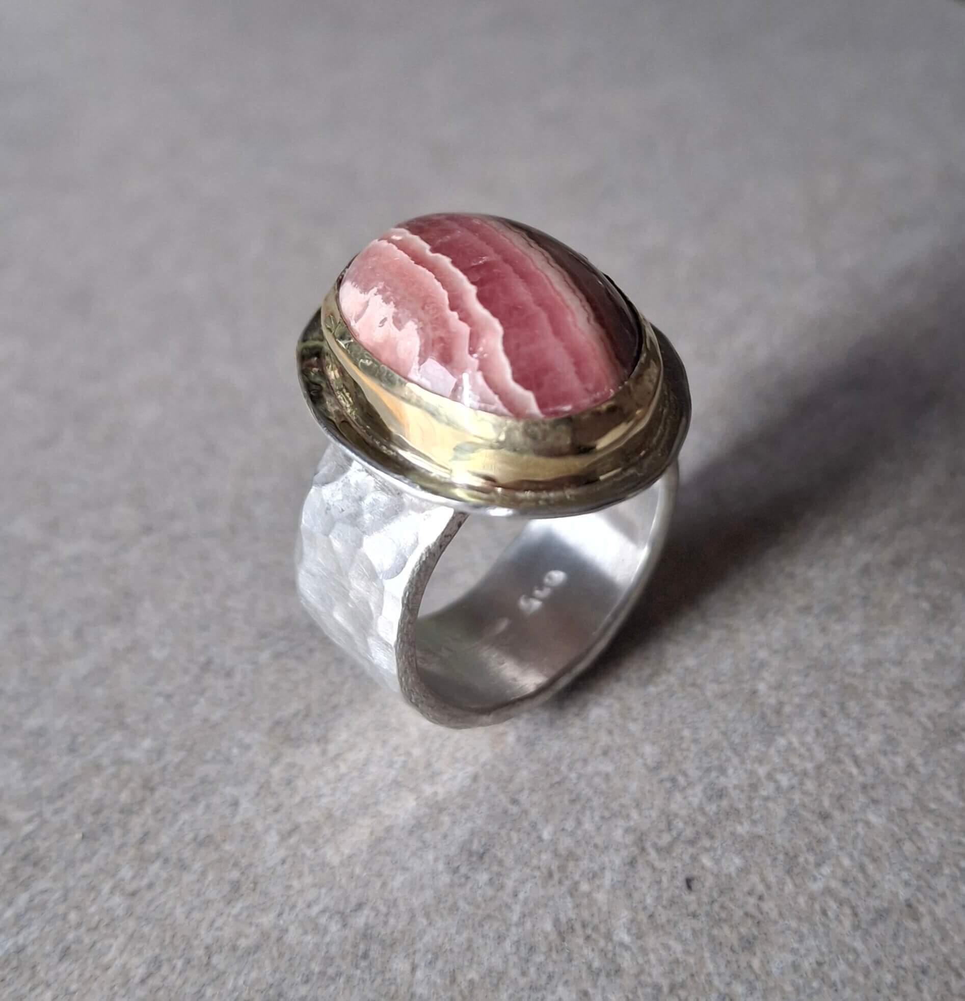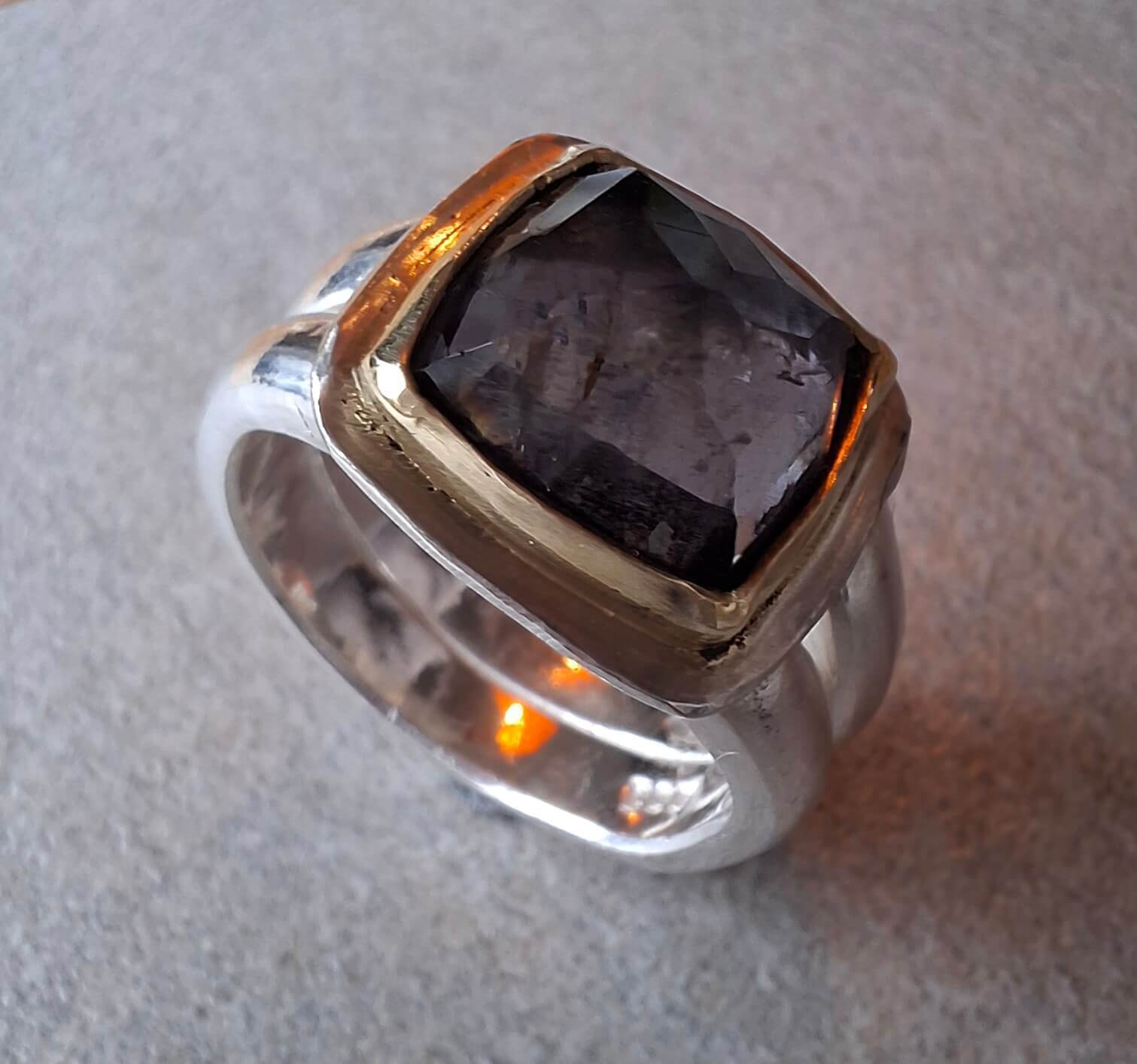 Zilveren ring met in goud gevatte r…